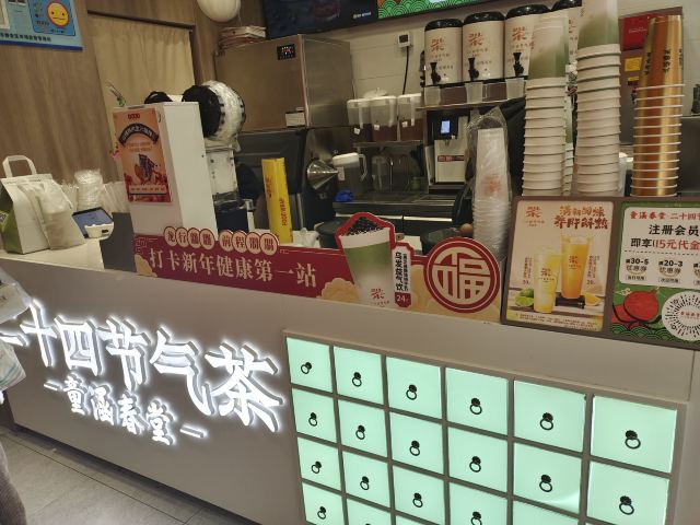 童涵春堂是一家非常著名的老字号中药店铺,现在名下开了一家24节气茶,专门主打养生茶,和现有的其他奶茶铺有所区别。这次买了一杯小吊梨鲜奶茶,口感既有鲜奶的丝滑,又有小吊梨汤的清香。喝完奶茶还可以,在店里顺便买买酸梅汤等养生茶包。