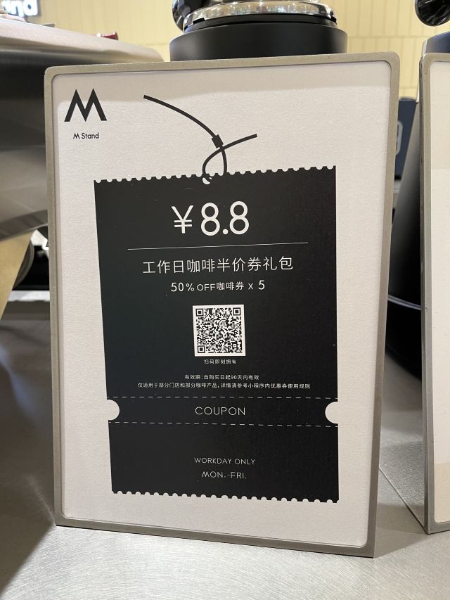 旅游度假继TIMS,麦当劳以后,财大金融谷里开的又一家品牌连锁店。 这家M stand 装修很简约,店面面积也很大,不论是店外还是店内设计感十足。 工作日的对折券性价比很高,店里平时也没什么人。 咖啡☕️没喝,我是来帮老婆取外卖的[流泪]。