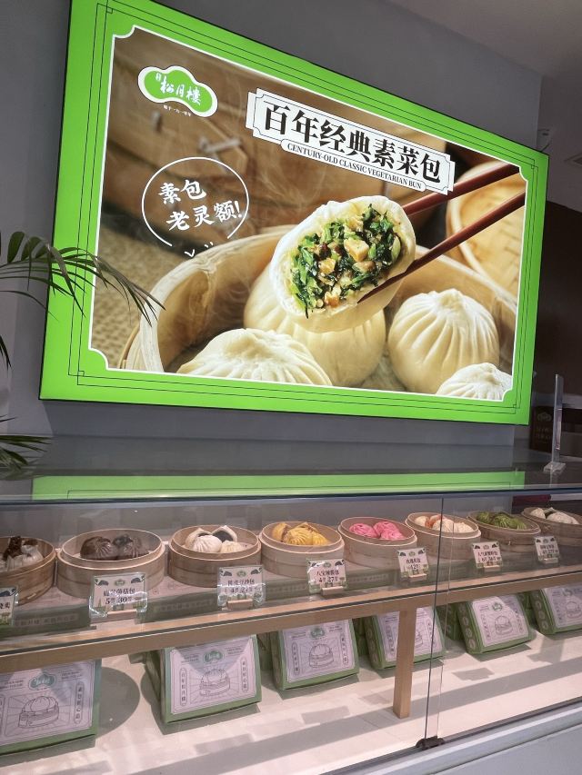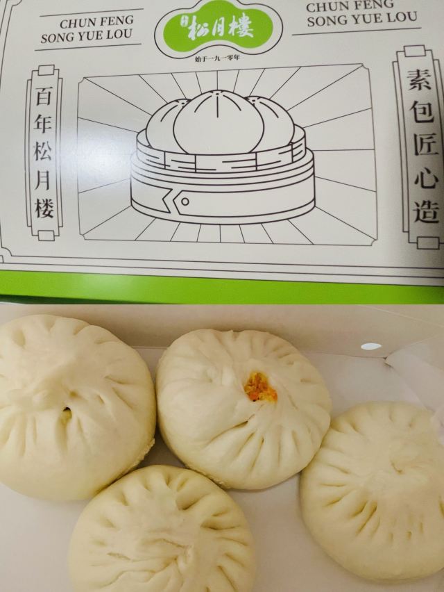 春风松月楼北外滩来福士店走一个~ 松月楼上海老牌子了,素菜包是招牌,每次必买~ 北外滩来福士分店第一次来,开在边边上~ 买了素菜包+豆皮包+素蟹粉包+鹿茸菌菇包~ 皮薄馅多,味道好吃的~