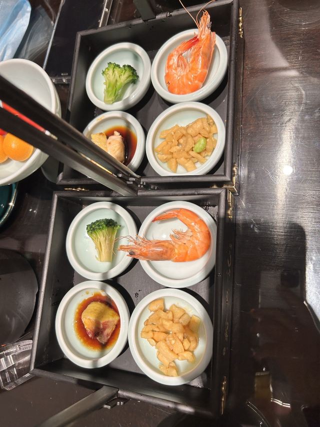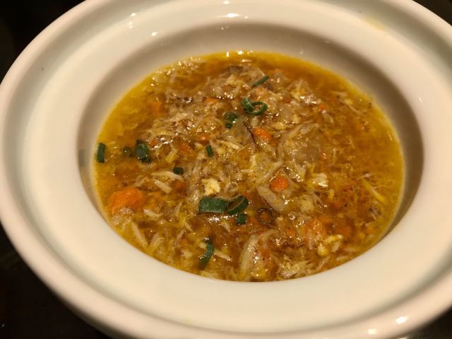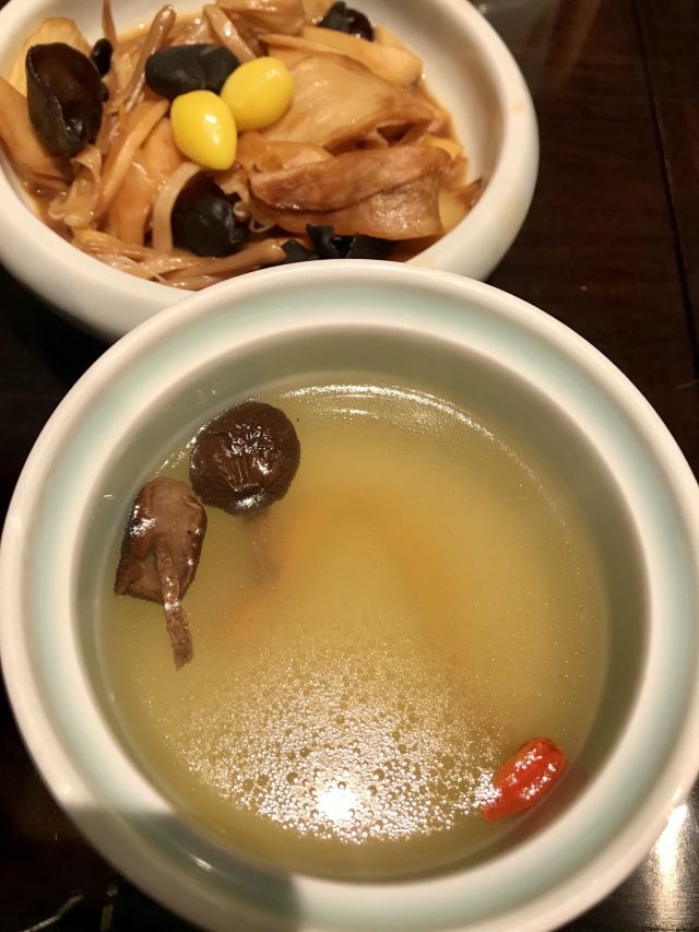 两碗面吃掉200元!魔都之苏式面店~ 这家主打蟹粉,浇头的选择上不多,由于蟹粉带头,所以,整体价格偏贵! 【环境】 环境算是面店里很高端的了,布置得很有氛围,郁郁葱葱,小假山,小鸟笼。 【服务】 自助扫码点单,拌面的话,服务员会主动来询问是否要帮忙拌。 【口味】 【苏式面】面条不错的,细面,下单的时候可以选择软硬程度,还有一两,二两,三两的选择。还能选择免油,这点很不错。面条不够可以免费续。 【文房四宝】 这是每桌都送的吗?比较迷你。 【罗汉上素 】味道不错,清淡的口感,颠覆了以往油腻腻的印象,也可能是里面没有油面筋的缘故。里面有杏鲍菇,白果,笋片,茭白,金针菇,总体挺好吃的。 【例汤】例汤据说是鸡汤,不错啦! 蟹粉面 蟹粉的量不多 【餐前水果 】【银耳莲子汤 】一入座就呈上来了,免费的。