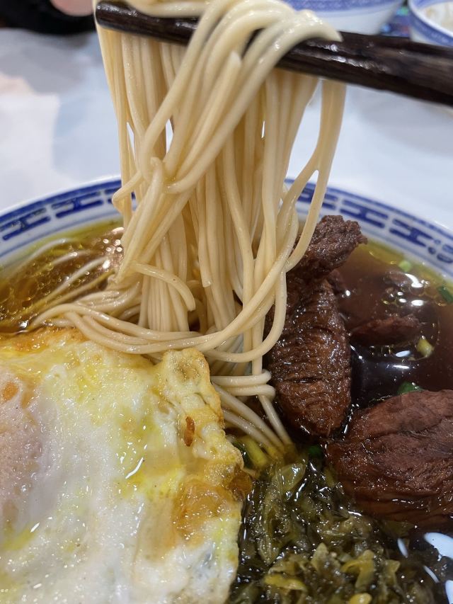 寂寞的西瓜早就已经成为过去时的老城厢美味记忆,终于重回市区街头啦,【永豐麵館】打卡完成✅ 👉 和曾经的吉安路老店一样,重新回归的【永豐麵館】,依然还是地道的清真风味,只卖各种牛和羊。 👉 骨汤汤底清澈又透亮,加了少量的咖喱来调味,层次分明却不油腻。 👉 吃货小伙伴被它家的面条秒圈粉,当场开始讲解关于方形面有筋有线的外观,还有爽滑劲道的口感等等。 👉 招牌款【红烧牛肉面】足够美味,但是【红烧羊肉面】也同样非常出色,羊肉品质比大多数古镇古街的出品水准,都要好得多🉐️多! 👉 晚到一步而已,当天的最后1⃣️碗【牛肉小馄饨】,眼睁睁地被前一位食客抢走,暴风哭泣😭😭 👉 完全不输某老字号的同款【麻酱拌面】,真的有被惊艳到,也治愈了没能吃到小馄饨的哀伤~