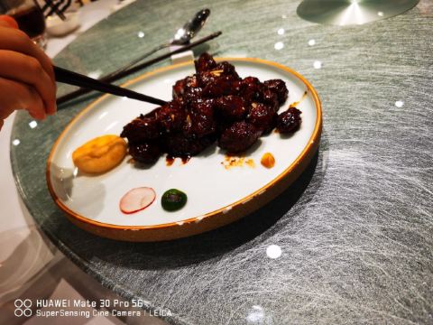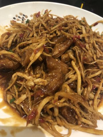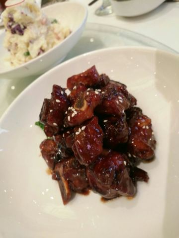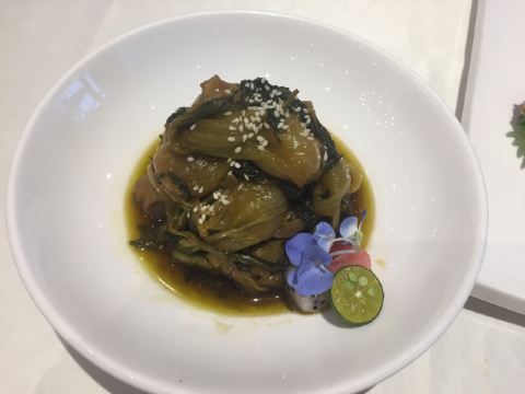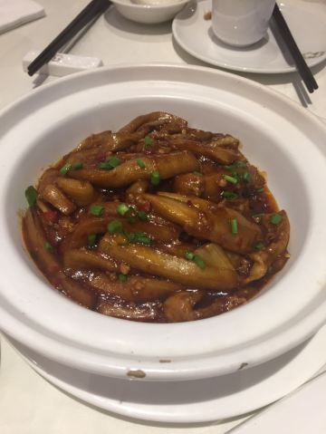 申宴,很有上海特色的一家餐厅,从进门处有一辆黄包车和大堂的整个装修风格就能看出来。菜品也很符合上海和江浙口味。点了东海干煎带鱼,拷菜,鱼香茄子等,大家都觉得鱼香茄子味道不错,茄子去皮,糯糯的,酸酸甜甜,有一点点微辣。