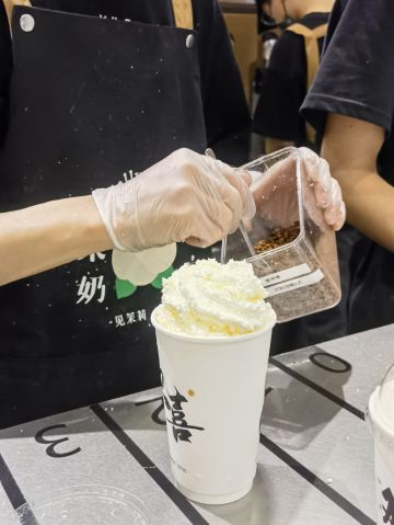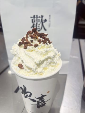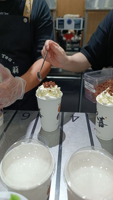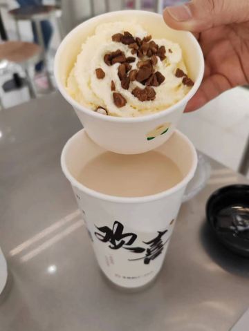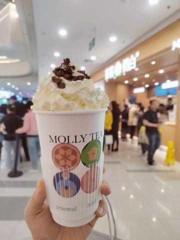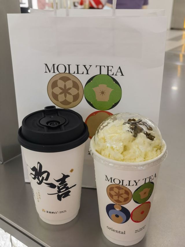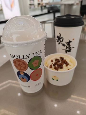 喝奶茶也中国风一把🌸 【环境】在长宁龙之梦逛街,商场里新开了一家中国风奶茶,带着尝新的态度去试了一下 【口味】一朵茉莉花,茶如其名,雪白的鲜奶油上造出茉莉花的形状,上面铺满巧克力果仁的点缀,看起来很有食欲,整体甜度适中,口感清爽,有一股淡淡的茉莉花香味,茶味与茉莉味的比例协调,结合的恰到好处,余味悠长。 另外还有白兰等饮品都很不错,包装设计大气新颖独特满满de治愈系~
