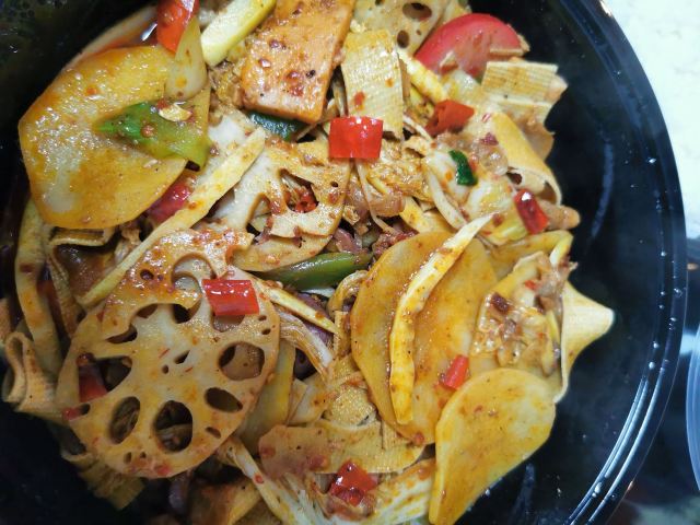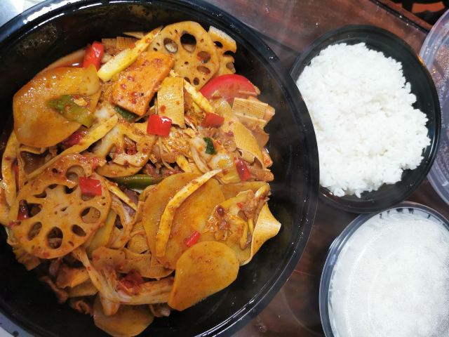 工作日午餐来一份麻辣香锅,特别满足+好吃,让下午上班充满能量。 【口味】 选了|蜀天上秘制麻辣锅底^很好吃,再配上各种自己喜欢吃的食材|午餐肉^|罗汉笋^|土豆^|莲藕^,就是一份完美的麻辣香锅了,超级下饭,|米饭^也好吃。