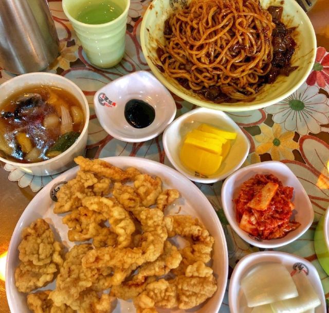 这家的糖醋肉超级好吃,肉软硬适中,韩式炸酱面也是招牌,分量很大,胃口小的可以两个人点一份。韩国的各种泡菜小碟的都也不错,中午的时候人很多,价格不贵。