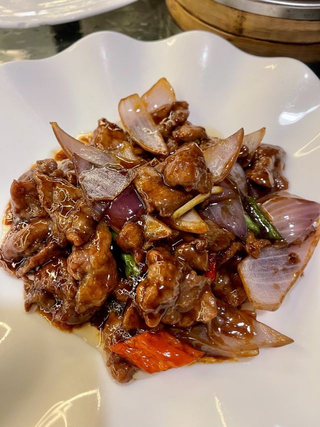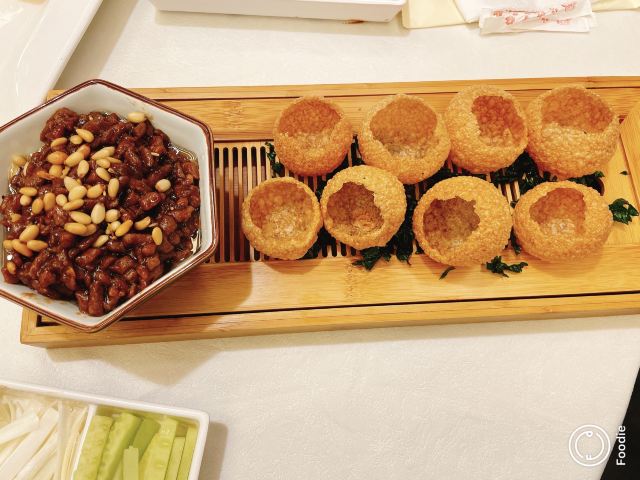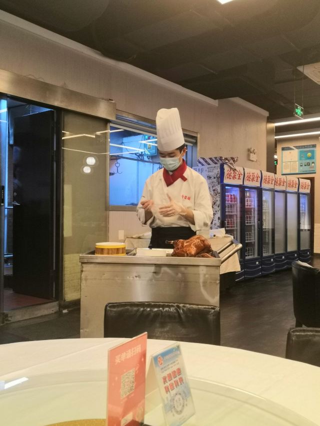 Monimika☘️家里长辈喜欢吃烤鸭,于是团购了烤鸭套餐。 ☘️全聚德烤鸭:全聚德的挂炉里,枣木与梨木慢燃,火苗舔着鸭身,脂香混着果木的甜丝丝往上窜。师傅片鸭时手稳,刀锋贴着骨缝走,先片皮再片肉,薄厚均匀的十盘码在白瓷盘里——皮是透亮的琥珀色,咬下去“咔”一声脆响,脂膏在舌尖化开,一场词藻都是多余。 ☘️白灼广东菜心:菜心盛在青花碟里,咬一口,脆嫩里渗着清鲜,连菜汁都是甜的。 ☘️蚝油牛肉:酱汁裹着肉,鲜得人直咂嘴,却半点不抢牛里脊本身的嫩。 ☘️清蒸白水鱼:筷子轻轻一戳,鱼肉就散成了蒜瓣儿,嫩得能抿化在嘴里。 ☘️椒盐桂花肉:金黄的肉条裏着白花花的桂,咬一口,咔嚓脆响里,咸香裹着桂蜜的甜,倒像把秋天的桂花香,都揉进了肚子里。 ☘️环境很好,服务满分,下次还会再来。