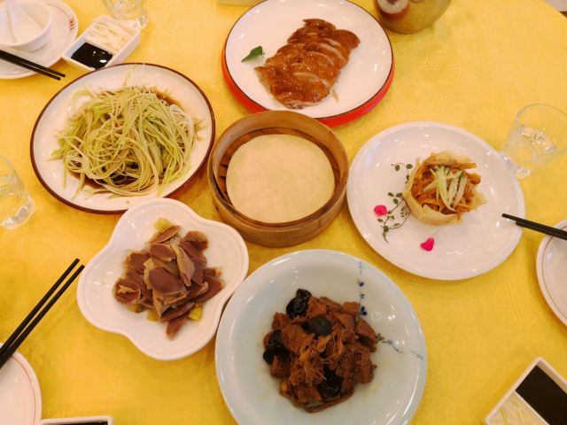 遇见美景,快乐欣赏全聚德(淮海中路店)位置优越,去看淮国旧时,在这里楼上用餐,烤鸭必点,虽然口味不如北京地道的全聚德烤鸭,但是总体感觉不错。