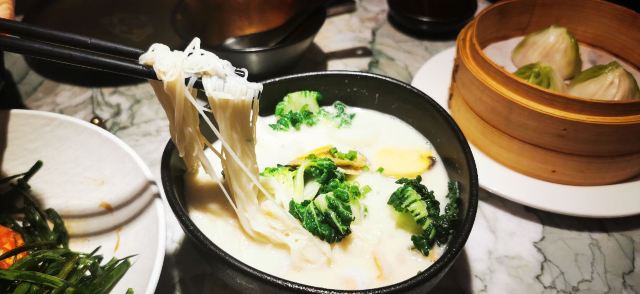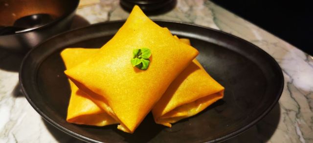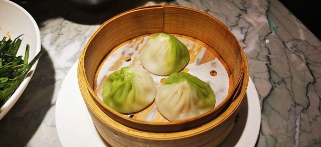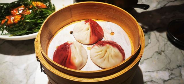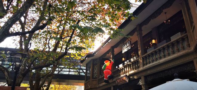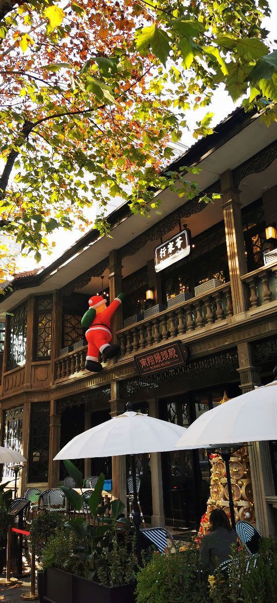 去年12月初某个下午,路过小时候住的老房子自忠路黄陂南路路口,圣诞的气氛已悄然到来。回头一望,夕阳西下,金光正照射在爬墙的圣诞老人背上,留下了两张令人印象深刻的照片。不过记忆中感觉这里是家什么火锅店,没想到一楼竟然已开着南翔馒头的精品店。上个月主动上门探店,零星飘一点小雨,室外是不方便坐了,老老实实进门。还好来得早,室内空间一点不大,服务生走动起来有时觉得周围满满的。确实做的是南翔馒头,不过完全按照流行的精品路线走,譬如伊比利亚火腿小笼。店堂中间是吧台,红彤彤的,可鸡尾酒配小笼喝,菜肴中口感比较惊艳的是松茸空气春卷,开心果肥肝酱也很受欢迎。至于价格吗肯定有点贵,稍微吃几个小笼尝尝鲜是可以的,大胃王则最好别来这里。见仁见智,大家还是自己尝试一下吧,别忘了用好第三方平台打个折