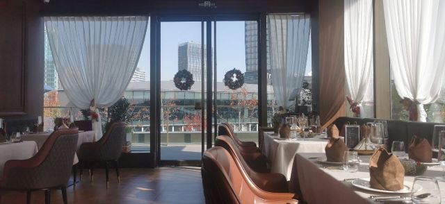 泡泡龙他爸可惜来的那天天色不算太好,空气中感觉有一层灰尘漂浮,所以拍照效果也差些。气温又低,只能室内坐坐。室内环境只能说还可以,算不上精致,不值得去细看。菜单上选择好多,牛排质量不错,战斧牛排分量十足,两个人吃得挺饱。服务殷勤,来之前要提前预订,据说可以事先要求布置方式,特别是客人有各种纪念日的情况。价格则不便宜,总体感觉,近几年去过的牛排馆,好几家听到的宣传有点言过其实,虽说也挺努力,但有些东西,譬如品位,不是随随便便靠努力就能解决的。这家口味不错,性价比一般般,整体不如BFC的高桌。出车库前要提前联络餐厅,让他们把车号输入,15分钟内才来得及出车库,这样方式好像挺麻烦,惟一好处在于可以吃完饭,楼下各处甚至马路对面黄浦江边逛好,再请餐厅帮你处理停车事宜