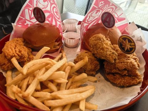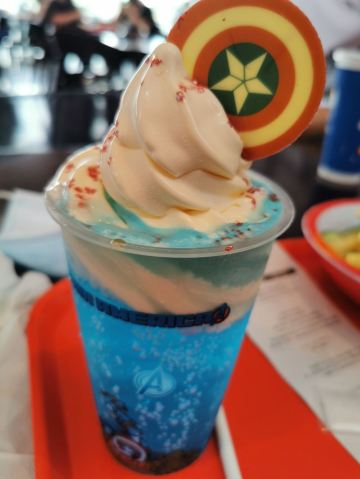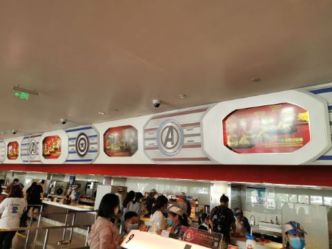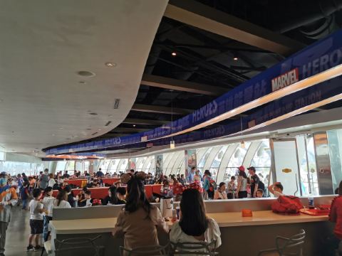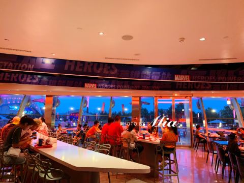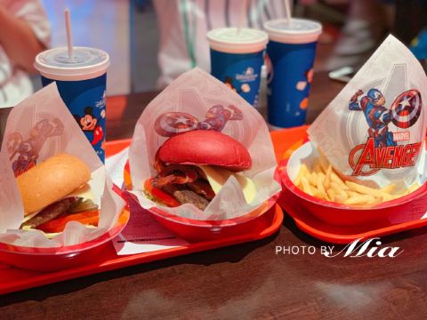 Stargazer Grill整个disney游乐园里餐厅还挺多的,星露台餐厅还是挺不错的~ 餐厅在二楼的位置,景观不错,面积很大,座位自选~ 点了一份[复仇者联盟家庭盛宴套餐],份量够3-4人食用,有2个汉堡+2份不同口味的鸡肉+4份饮料+2小杯冰淇淋+还有薯条~ 味道过得去~