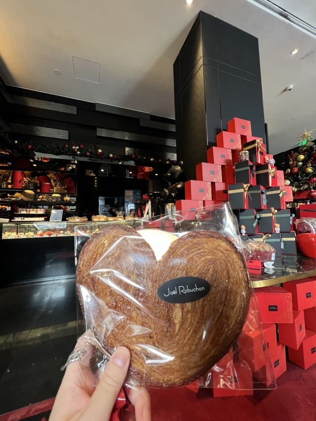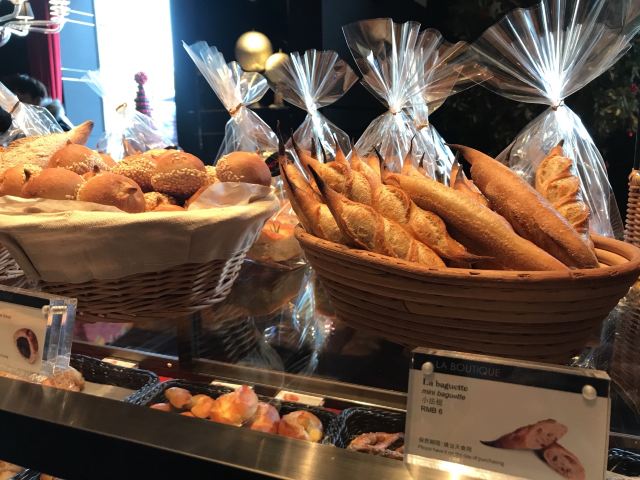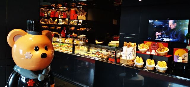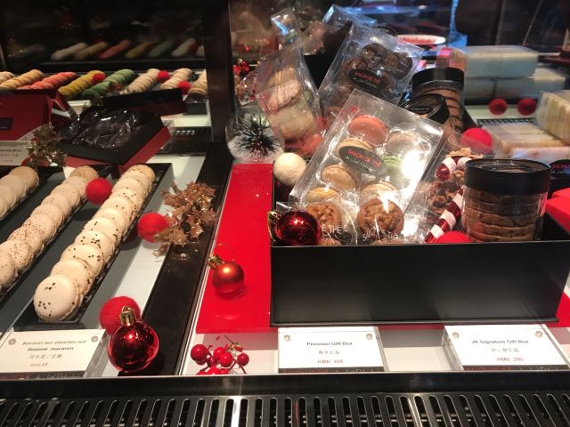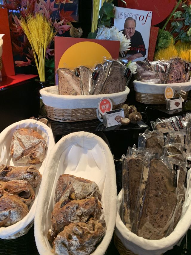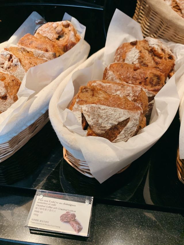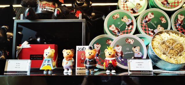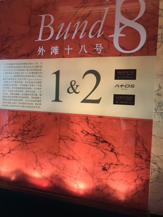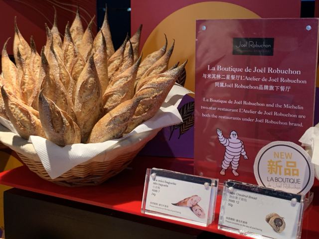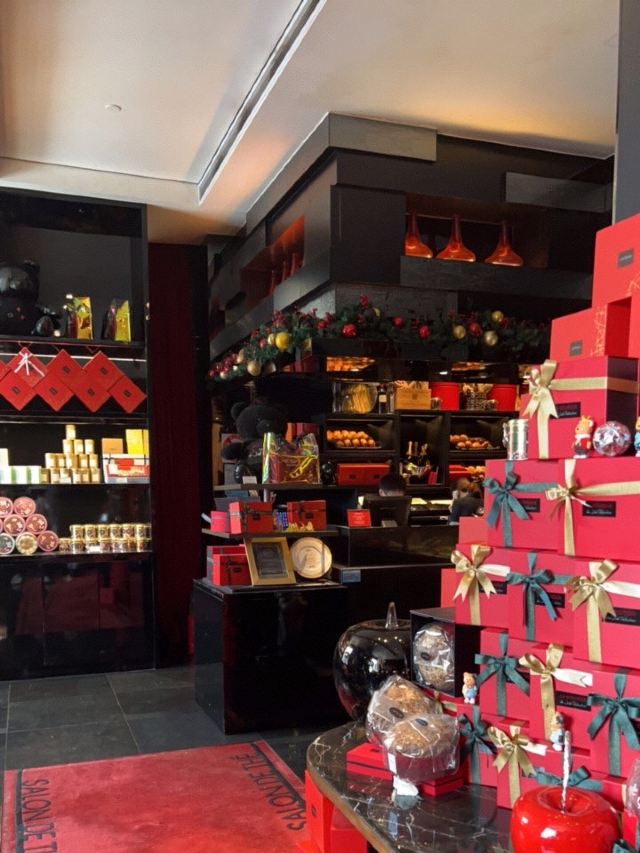 Salon de Thé de Joël Robuchon (Bund 18)这家店占地面积不小,一楼大堂还有更大的下午茶空间。就是大概我到的时间不对头,没看到有人。店内大红大黑色调浓烈,Robuchon不知为啥翻译成“猴布熊”,这不,一男一女两头“猴布熊”站在店堂里,可爱的。面包、甜品选择多样,特别喜欢他家的柠檬派,虽然有点酸酸,小家伙则更钟爱那些蛋糕,例如歌剧院之类;马卡龙选择也多,怕太甜没有尝试过。总体感觉是家相当不错的西式甜品面包铺,价格还在可以接受的范围,没有贵的太过分离谱,发票是纸质的,开起来速度稍微慢一点