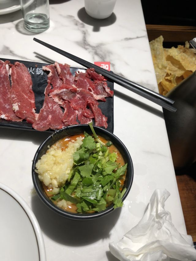 二次探店,尝试了其他不同的锅底,其实我个人认为,简单普通的汤底,最能凸显潮汕牛肉火锅的特色,同时店里有个会员群,会有不定期福利,而且店里最喜欢的还是吊龙,很新鲜很美味,另外就是上菜速度很快,调料种类很多,不过唯一点就是餐具收费,调料收费,有点觉得不是很厚道,或者应该合并收一个!