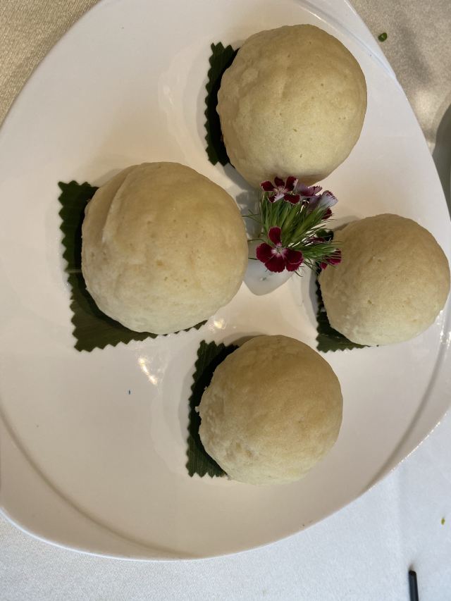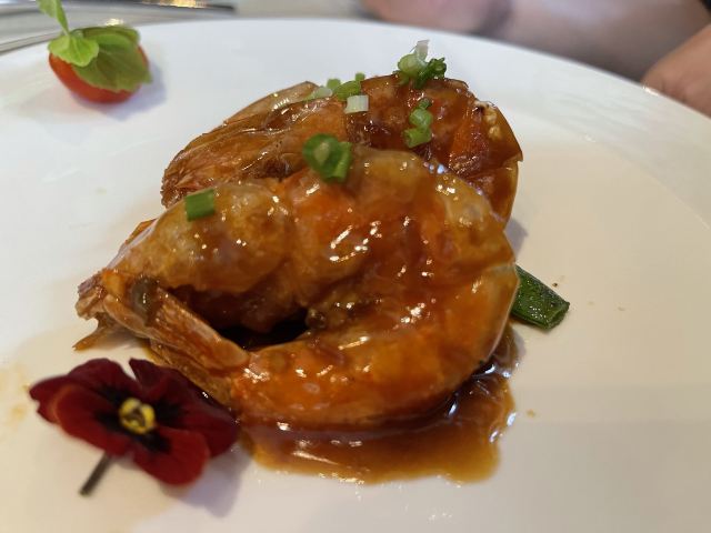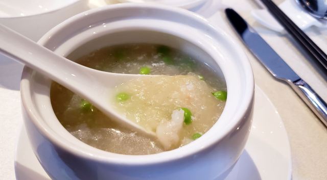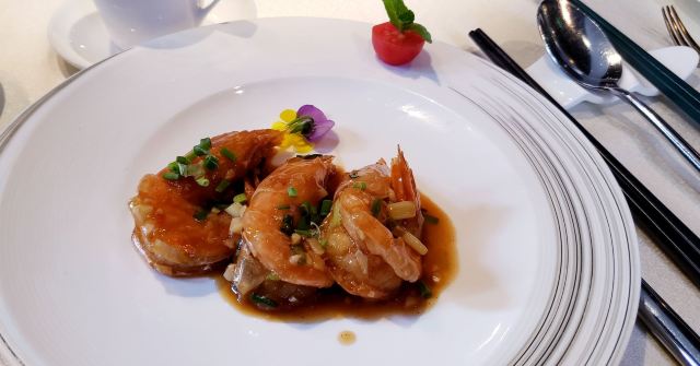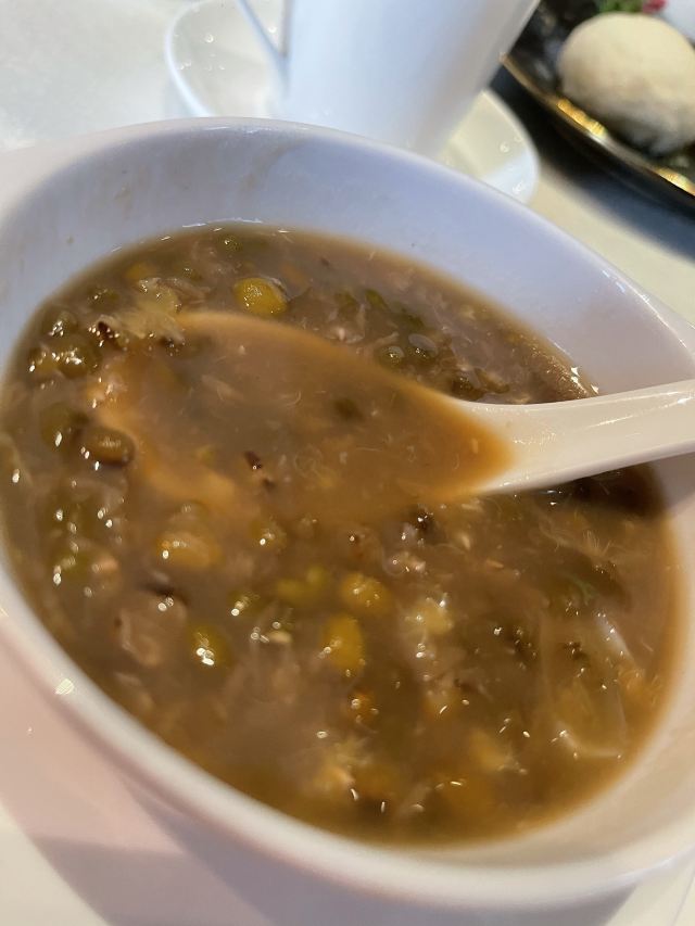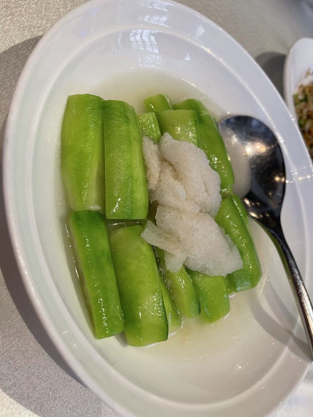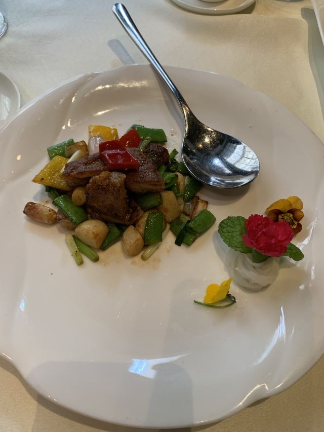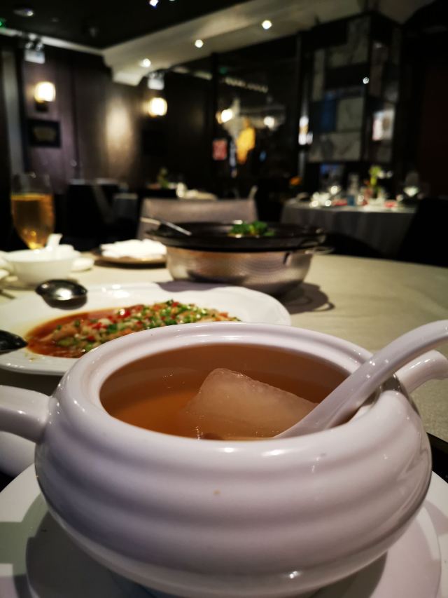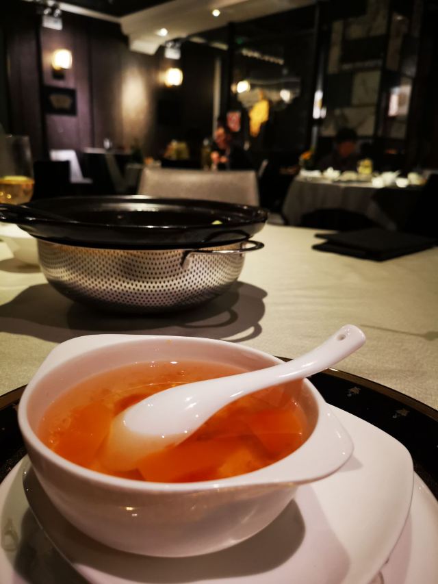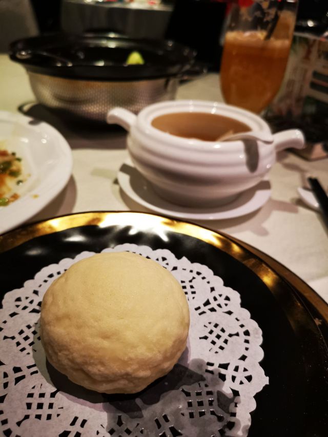 蒜头JEWEL团了很久的套餐终于去拔草了。 位置:外滩5号,如果不赶时间吃完可以外滩走走,很舒服。 菜品:虽然是套餐,但是丝毫没有拉低菜品质量。 冬茸海皇羹 很鲜。瑶柱仙贝虾肉都是小颗的混合在汤里,很好喝。而且吃完嘴巴没有很干 应该是食材本身的鲜。 雪花牛肉粒:最好吃的一道菜 牛肉粒非常嫩 油脂配比非常完美,配菜也都很好吃。 美极海中虾:虾身体的味道可以,虾头部分太咸,一口下去要喝点水压压。[笑哭] 胜瓜:清淡口 无亮点 炒饭:稍微有点油 流沙包:点心加分了回来,皮薄流沙多,口感细腻。 绿豆沙:无亮点。 服务:要特别提一下。服务员都很拎得清,手脚快添水换盘子的。赠送的水果本来里面是枣子,和服务员说了过季节了很老,很快换了份新。很感谢!