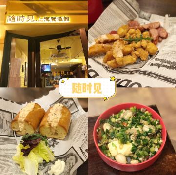 秃比不是小刘鸭👏🏻意外发现的一家小店,很喜欢店名:随时见,等疫情结束后,想见你的时候,就随时见吧。 👏🏻店门口写着上海餐酒馆,其实主营的是台湾菜。店里是暖暖的黄色调,怀旧的海报,很温馨。 👏🏻「豆鼓生蚵油條飯」十分有惊喜的一碗饭!牡蛎很新鲜,完全不腥,汁水充盈。脆脆的油条和软嫩的豆腐,完美搭配~ 🦞「龍蝦三名治」很西式的一道菜品,黄油法棍很脆,中间加满了龙虾色拉,龙虾肉很有弹性。 🍗「炸物拼盘」性价比很高,一次可以尝到四种台式特色炸物。有花枝丸、盐酥鸡、甘梅地瓜、台式香肠,很怀旧的味道。 🥤「珍珠奶茶」奶茶很丝滑,珍珠给了好多,糯糯的好吃。