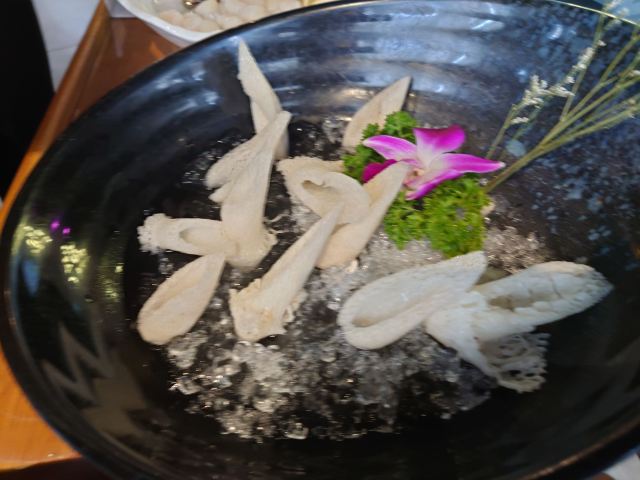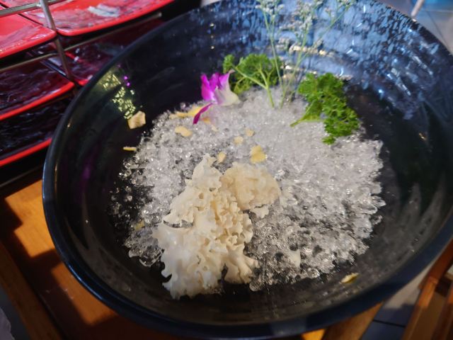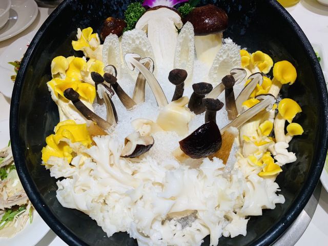 凉拌鱼皮,松茸,鲍鱼,刀削面,椒麻鸡,生猛海鲜拼盘,特色蘸料,特色沾水,竹荪,野生菌拼盘,天鹅蛋,蛏王,招牌活斑鱼,斑鱼大锅底,爽脆鱼皮,锦绣海鲜拼盘,菌菇拼盘,招牌金桔茶,招牌斑鱼片,绣球菌,相间肥牛,活斑鱼