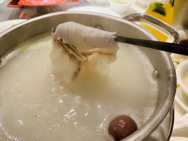 CHUN WEI BAN YU FU BAO SHAN DIAN【环境】 餐厅位于1号线共康路2号口出来就是,交通很便利。干净整洁。 【服务】 服务员服务态度很好。 【口味】招牌活斑鱼,涮几秒上来,非常鲜嫩可口,推荐 菌菇拼盘,种类丰富,在鱼锅里涮一下,异常鲜美,推荐。 刀削面,弹性十足,配上鱼汤一起,鲜美