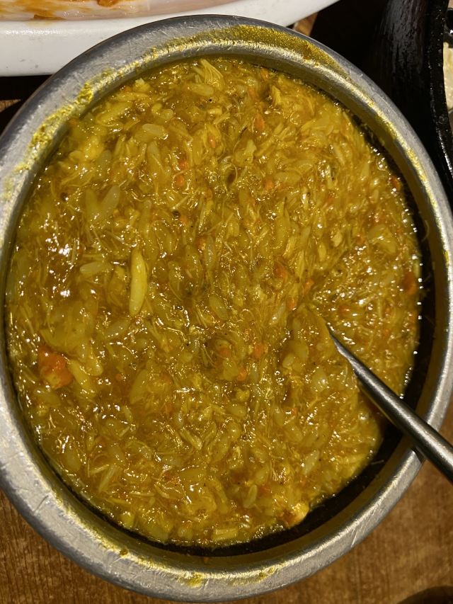 YoYo_6R7R7B3E重庆游客,携程推荐去的,三个人点了7道菜(包括主食,因为好吃所以也算菜了),基本光盘\^O^/。非周末,人也很多,直到我们吃完8点多吃来还是排队。可以微信预约,估摸一下到的时间,提前一点预约,应该可以节约点时间。花雕话梅虾,夏季只有熟制的,冷一点才有生的,本来最期待,结果是唯一没能光盘的╯▂╰,虾肉偏甜,略微有点酒的苦味,口感来说一般吧,介于生熟之间的软硬程度。咖喱肉蟹,最想吃的是膏蟹,但没到季节,不过咖喱肉蟹算是本餐最佳,咖喱浓稠鲜香,蟹肉新鲜,咖喱海鲜都爱的人肯定会喜欢。酱油炒饭不会很油,浓香型。拌面,蟹肉豆腐,笋都还不错,可圈可点。