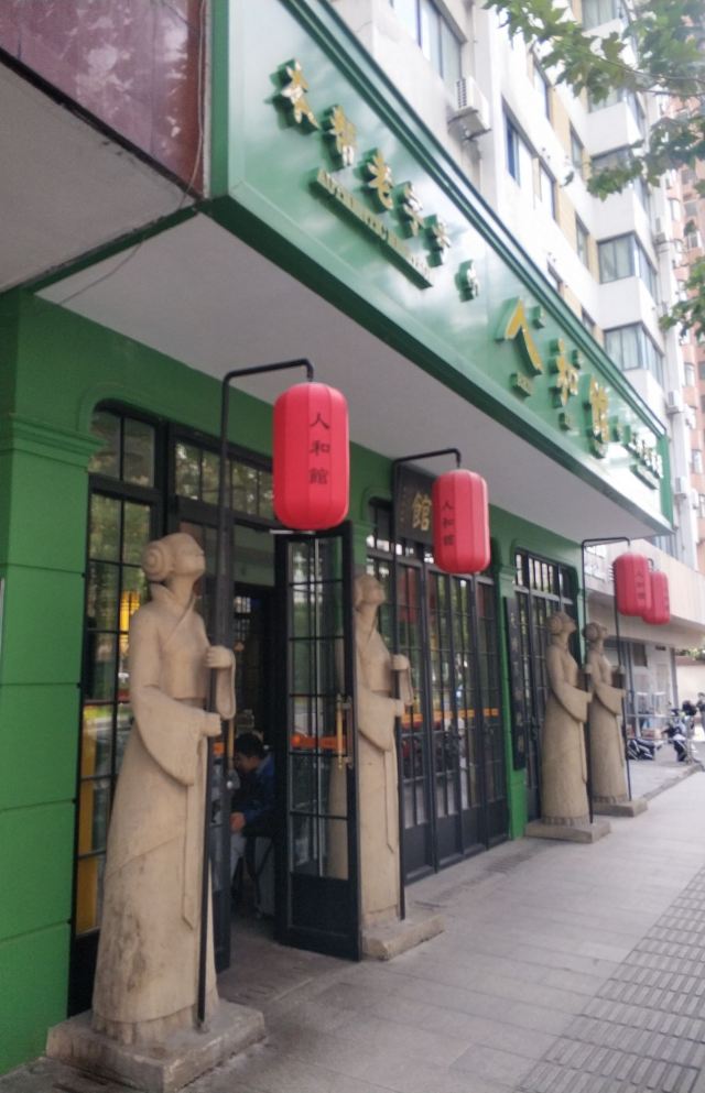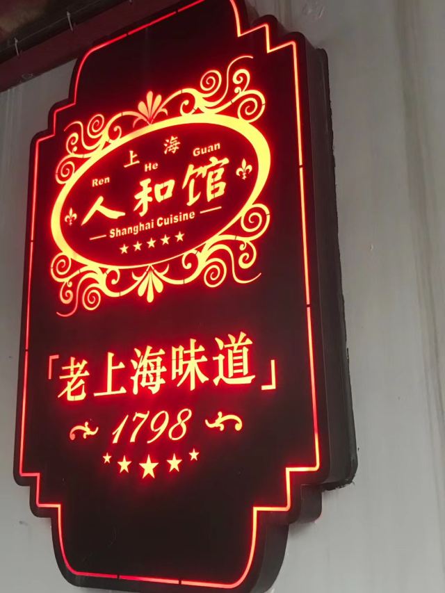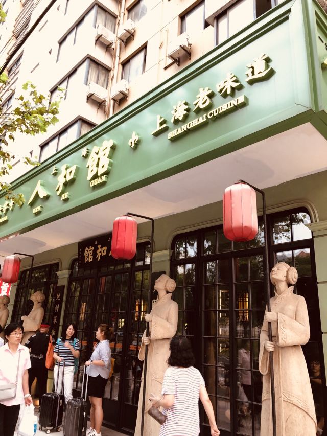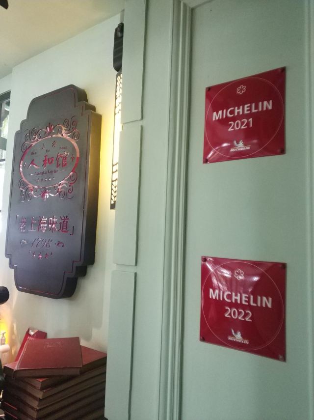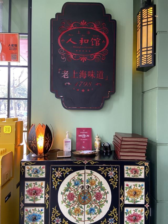 carol_cai07022022开启米其林之旅07 2021老饭店用餐收官 2022米其林之旅开启 每月一次的米其林之旅,这次选择在肇嘉浜路上的人和馆;提前支付300元在DP上预约了,到期前一天就发送短信进行提醒,非常贴心。 门口四个石头丫鬟手持店名红灯笼,非常特别;店内弥漫着老上海味道,有老上海老行当的黑白画、老上海广告画、老上海的老物件……一间间不大的房间,可容纳五六桌;具有老上海旋律的歌曲悠扬在店堂内。 点了必吃榜的蟹粉拌饭,店员会主动帮忙搅拌&分餐;询问之下,得知一小份用了五六只太湖蟹&六月黄,每天大概会出售100份;糟钵斗里有毛豆、凤爪、鸭胗&门腔,糟香浓郁、咸淡适宜,不过对于口味清淡的人来说,最后感觉还是有点咸;银鱼羹里的银鱼又大又肥;青菜带花蕾,只采摘最嫩段,用鸡油炒制,软糯好吃!