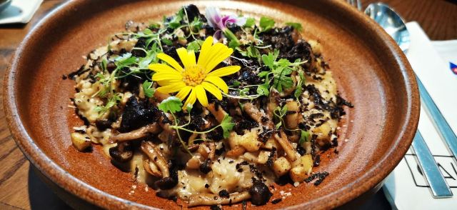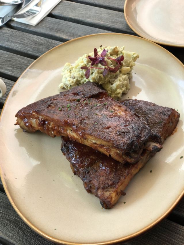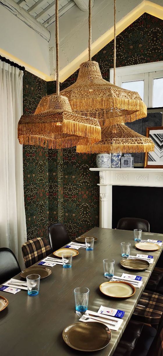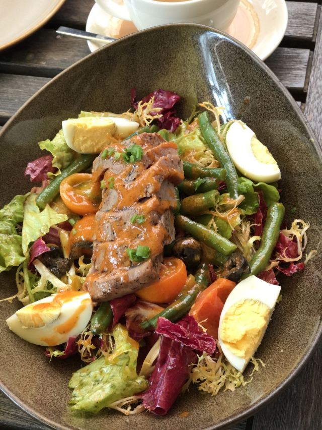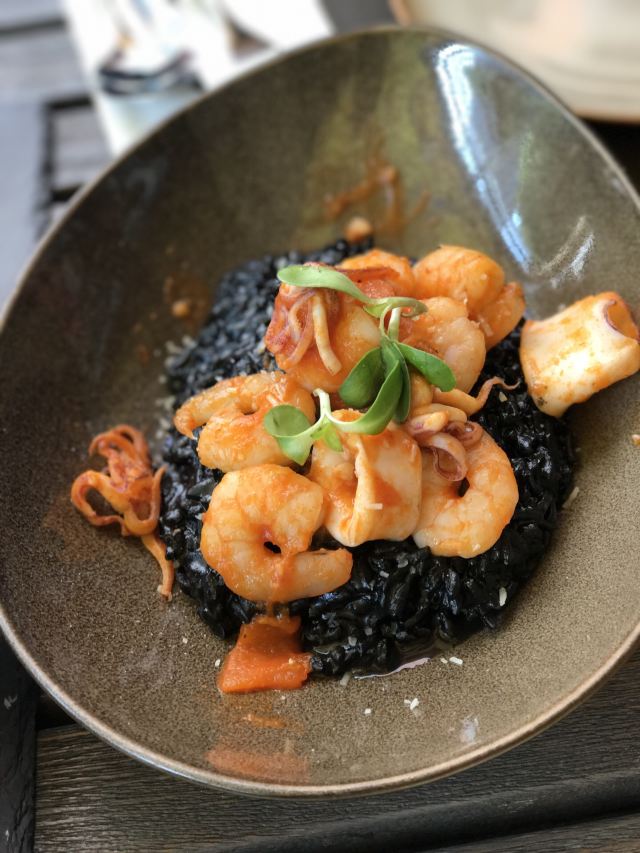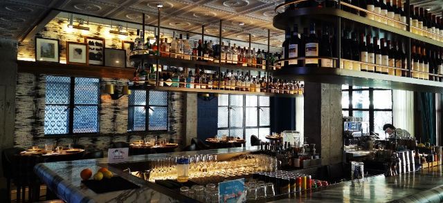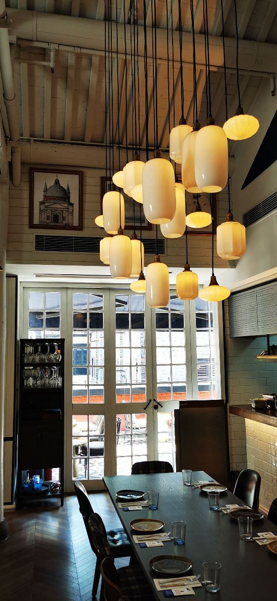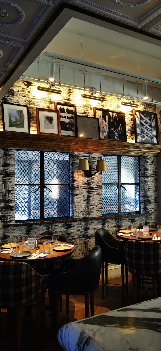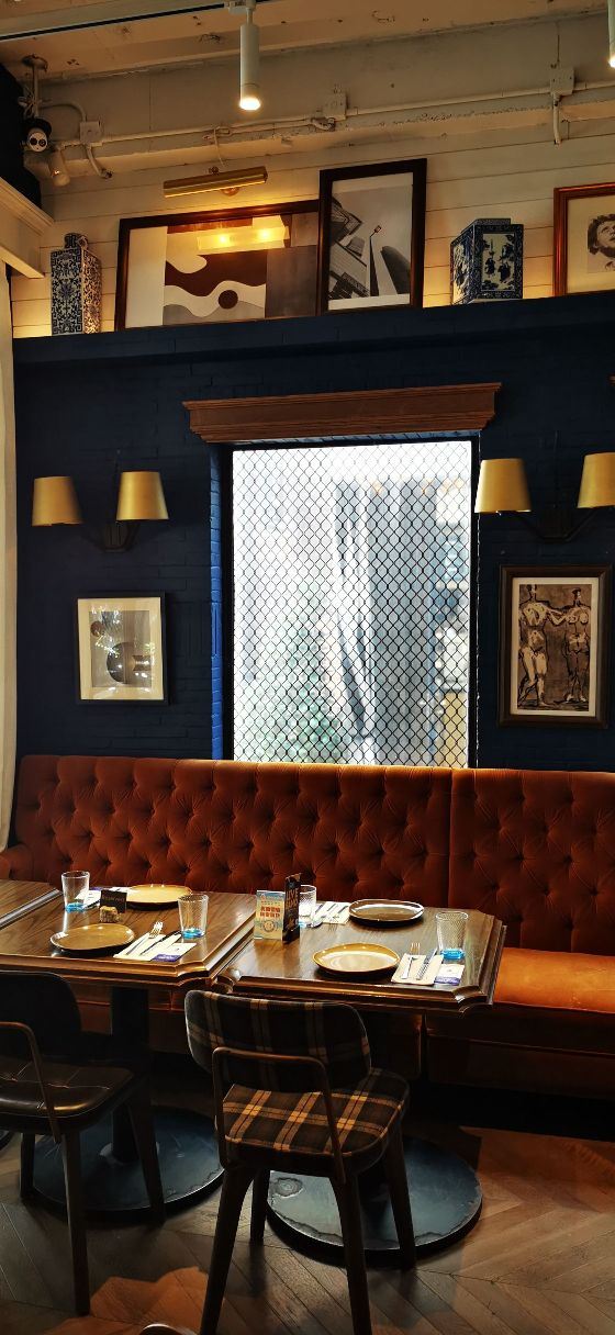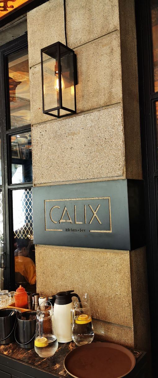 Calix二楼除了两个不错的包房,还有室外平台,一张可以坐十几个人的长桌紧贴着开放式厨房,是一群老外来喜欢的位置。美式的餐饮风格,量大,性价比相对比较好。我们五个人,就点了一堆前菜,腌香草帝王三文鱼新鲜,辣鸡翅的酱料口味不错,酥糠焗小鱿鱼香菜丝色拉端上来差点以为是鸡块,马里兰蟹肉饼则中间放了面粉,吃上去有点粘口,口感不好,要像莫尔顿那样的纯蟹肉饼才好吃。要了份牛柳,小家伙另外几乎独吞了一块肉眼牛排,相比之下,肉眼牛排更嫩,吃口更好,可惜天生的稍油一些,我不敢多吃。蒸龙虾最出色,还有虾黄,价格也容易接受;香烤大西洋比目鱼比较清淡,黑松露菌菇意式烩饭外观漂亮,可惜没尝到。包房可以关门,内外再吵闹也不会相互影响,就是洗手间在楼下扶梯口子上,地方较小,设施有点老旧了。服务不错,发票是电子的,扫码可以拿新天地的积分