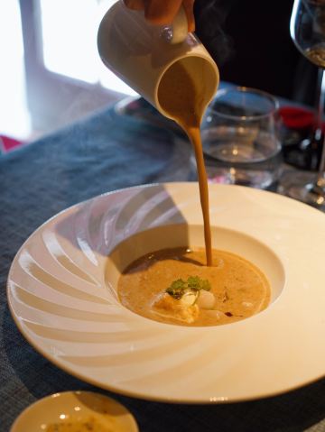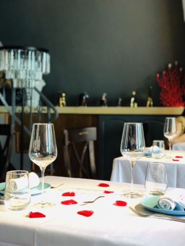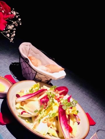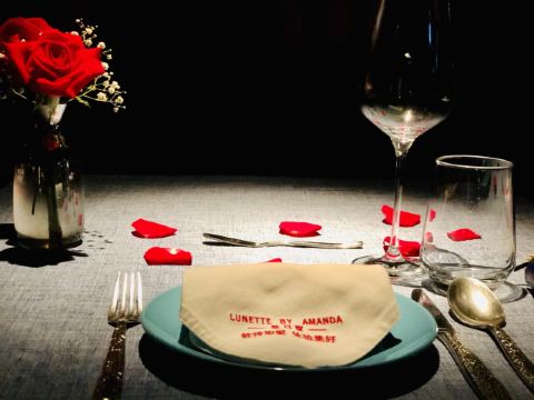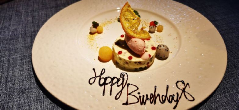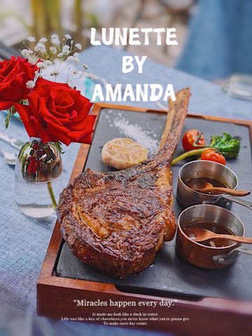 LUNETTE BY AMANDA猜想餐厅和楼下的皇家摄影是同一个老板,装饰很讲究,灯光效果极佳,仅仅是桌面上多放了几片玫瑰花瓣,味道就完全不一样,拍照效果好。看了菜单,选择要算很多的,要了份双人套餐,端上来发现量相当大的,还好没有加点许多。从餐前面包开始,就觉得厨师手艺到位,后来的加拿大雪蟹脚、香煎鹅肝、芦笋浓汤、肉眼牛排、波士顿龙虾都做的很不错,酥皮清汤稍弱一点。酒的选择也很自由,170元3杯,这个价位,在法餐中算是较为令人愉快的。可以提前告知餐厅有人过生日,餐厅会准备小烟花给人惊喜,服务也是比较贴心的