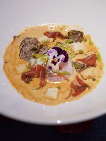 惠灵顿牛排,低温炭烤牛舌,新西兰青口贝色拉佐柠檬橙味啫喱&芥末芝麻酱,自制传统鹅肝酱,甜品,惠林顿牛排,熔岩巧克力蛋糕佐香草冰淇淋,饲谷西冷牛排,日本北海道扇贝酥皮塔佐鸡油菌松露汁,餐前面包,泰式新西兰青口贝,温泉蛋,黑松露温泉蛋,波士顿龙虾黑松露烩饭,黑松露,虎皮大虾罗勒宽面,香烤法国黑鳕鱼