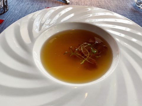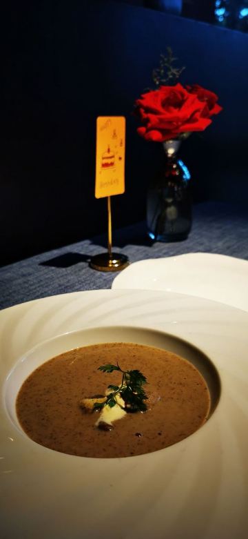 saisyou1餐厅周打卡NO.10 昨天吃太多让我内疚,今天特意早上去健完身才去吃饭! 健身太痛苦了,过完餐厅周我要少吃点[捂脸][捂脸] 今天来的有点晚,用餐在二楼,外面还有个露台,喜欢露台的朋友可以直接坐外面享受阳光☀️ 餐前面包很不错,比昨天那个收费的餐前面包好吃多了! 特别是那个长条的小棍子,很好吃,有点像拿破仑的酥皮! 前菜的牛舌和汤都很不错[强] 牛柳相当大,上面有芝士、菌菇,黑松露调成的浇头(不知正确说法是什么[捂脸][捂脸])。 要了三分熟,还是挺嫩的! 甜品量挺大,一大杯,可是我已经吃不下了[笑哭][笑哭] 服务、口味都不错[强] 餐桌也很有仪式感,很适合纪念日的情侣选择这里! 楼下停车很夸张,不建议开车来!