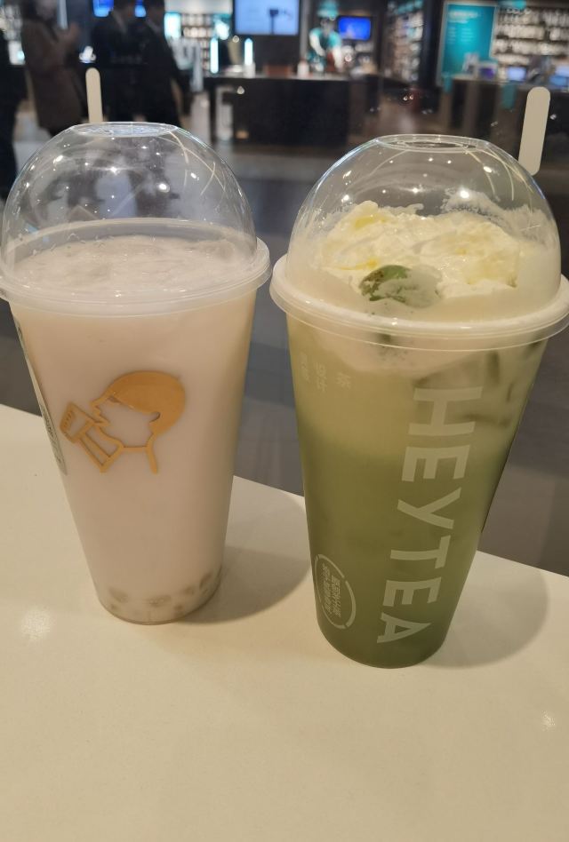 Heytea【环境】 环境很不错,干净宽敞整洁,点单制作区和就餐区是分开的~ 【口味】 |兰亭序·茶布奇诺^很好喝,能喝出茶香味~ 工作人员再三提醒需要充分搅拌后喝,绝了~
