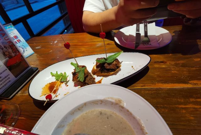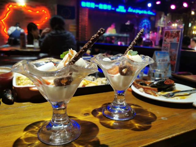 一直钟情这家的黑啤,苦到刚好!淡淡的巧克力味道和焦香味! 薯条的味道也是刚刚好,脆焦黄[呲牙][呲牙][呲牙] 朋友点的幸福,入口先甜,后面她说就有点儿回苦!幸福啊哈哈 这个果盘真的像到了仙境!水果吃着挺新鲜的,提子喜欢吃 最惊艳的还是这个乐队,古巴来的,好嗨啊!听着音乐都想上去蹦跶了[偷笑][偷笑][偷笑][偷笑]