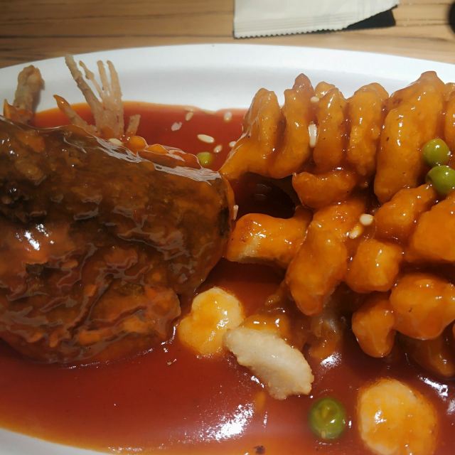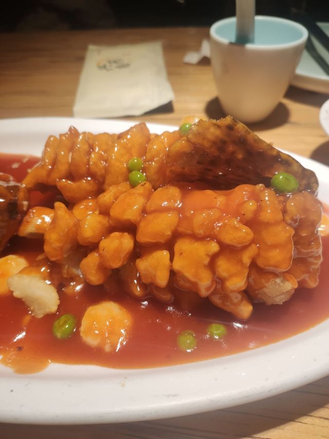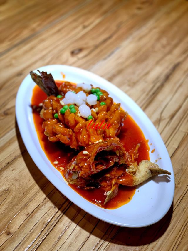 买了一个套餐,真是量大实惠,现在也没得卖了。松鼠鳜鱼,挺大的一条,一个菜就值回票价。红烧肉 味道浓,口感酥软,老人很喜欢。毛血旺也是好大的一盆,吃也吃不下。虾球超大个,但是也超辣,芥末放太多了。