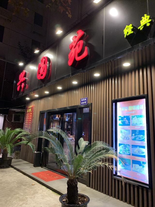 位于上海市长宁区番禺路405号,临近上海交通大学和上海影城的兴圆苑是一家开了多年、专营经典本帮菜的老字号饭店,环境装饰典雅,菜品口味入口,价格经济实惠,一层为大堂,二层为包房。