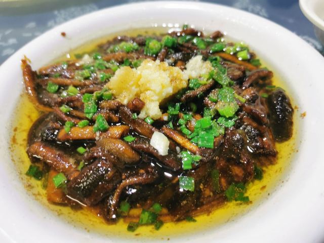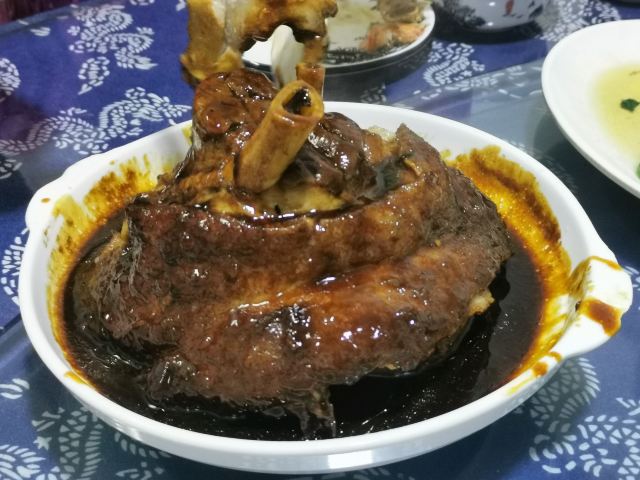 枫泾三桥旁,生产街沿河长廊上的一家农家餐厅,打眼看到店名就有点好奇,这是典型的本地方言命名的店招,土色土香接地气。点了一份枫泾特产的丁蹄再加一份新鲜草头,点到为止,胃口正好。价格也算公正公平。