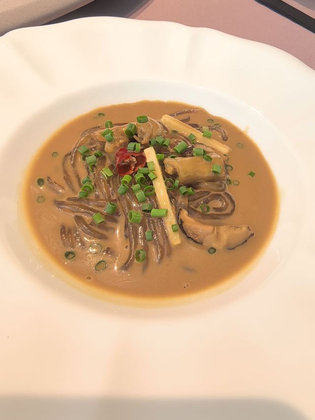 口味: 虽然吃的是[穷鬼套餐],但每道菜品都很精致又好吃~ 招牌菜品|沙蒜烧豆面^味道刚刚好,口感略有嚼劲~ |脆皮乳鸽^也很好吃,皮脆肉香刚刚好~ |蜜汁红薯^口感又绵又甜,作为餐后甜点,完美~ 环境: 大堂靠窗座位很不错~