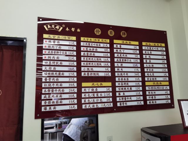 麻酱拌面,咸蛋黄狮子头,酱鸭腿面,蜜汁素鸡,香菇肉筋面,老上海罗宋汤,咸菜肉丝面,怀旧辣肉糜,黄酱,牛腩浇头,大排面,新鲜鸡毛菜,香酥爆鱼,香酥炸猪排,辣肉丁面,葱油拌面,咸蛋黄狮子头面,辣酱面,焖肉,酸梅汤,咳嗽辣肉糜凉面,辣肉丁,香菇面筋面,罗宋汤
