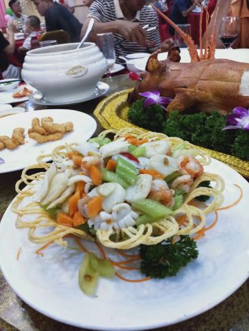 杏鲍菇炒牛柳,酱萝卜,普洱,蜜汁叉烧,虫草粥,鱼片粥,蛋包饭,基围虾,野米炖辽参,小米炖花胶,鲍汁鲍鱼,脆皮乳鸽,星河湾虾饺皇,四川口水鸡,剁椒鱼头,点心自助,水煮牛肉,白灼牛百叶,深井烧鹅,九肚鱼,千岛湖大鱼头,鱼汤米线,红烧肉,招牌黑金包,松茸鹅肝,葱油真粤鸡,虾饺,血燕,金沙肠粉,石窝牛仔锅,乳鸽,北京烤鸭,火爆辣鸡香蒜披萨