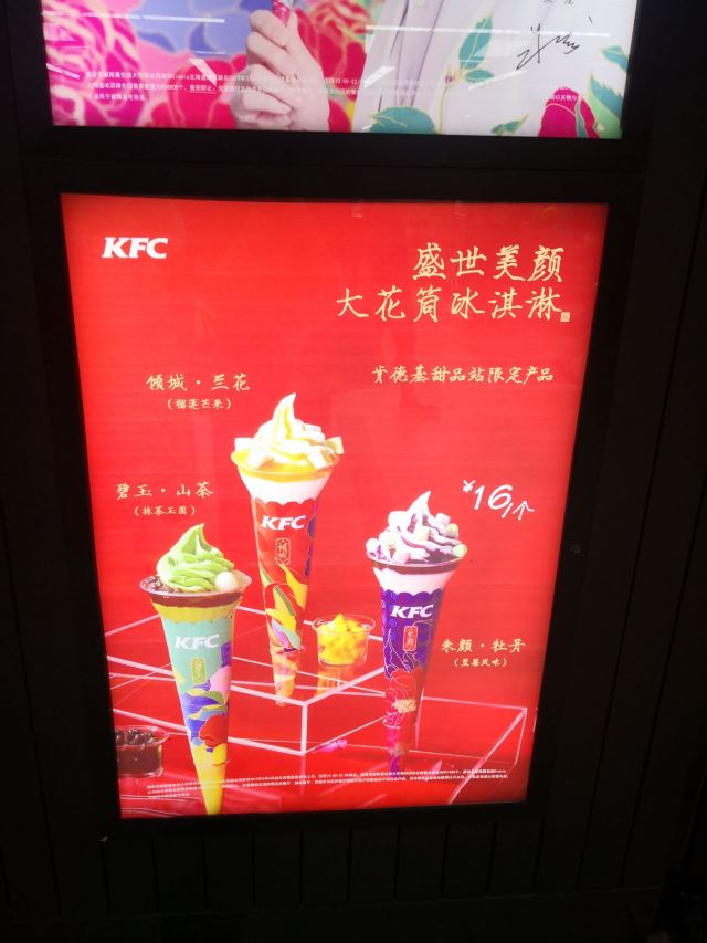 长宁龙之梦的肯德基就在地下一层家乐福的对面,她家的冰激凌选用的是北海道的牛乳,挺好吃的,就是价格有点小贵,现在是朱一龙代言,盛世美颜大花筒冰激凌,还不错哦