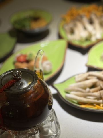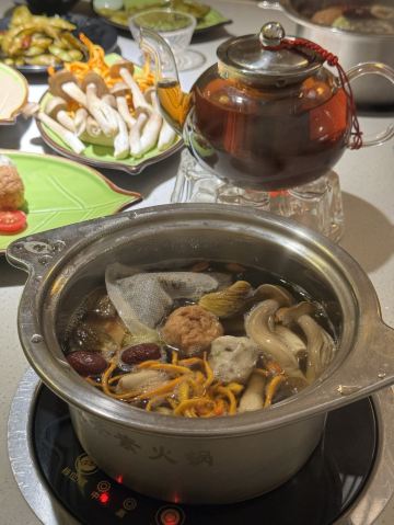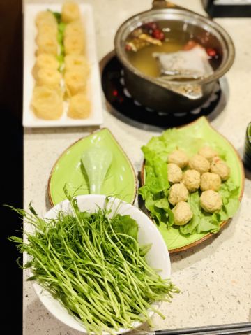 一叶一世界🍃 充满禅理素食藏茶火锅🍲 一壶茶静静的听着梵音佛乐 一人一叶一世界🍲 这边的特色就全是素的 每盘🍃装盘不仅长得像肉 吃起来也有肉感哦 爱情扎萨热乎好吃😋 关键清胃无负担[微风]
