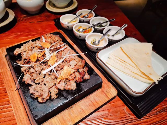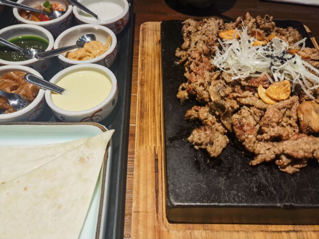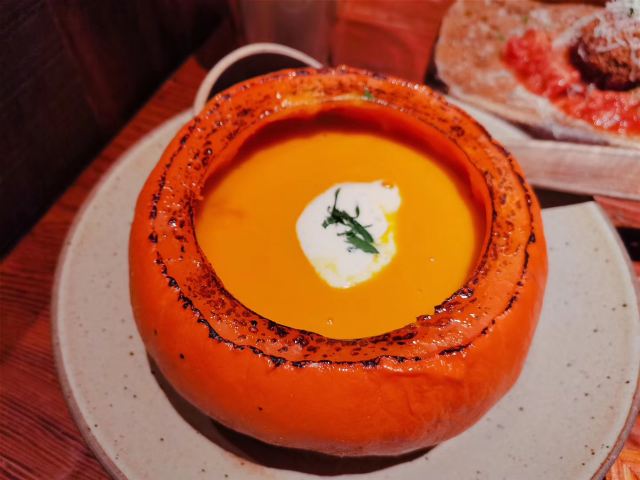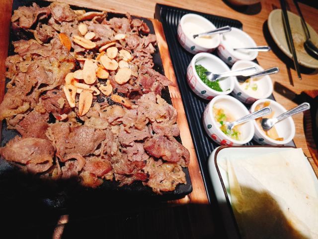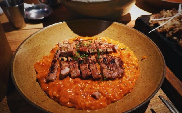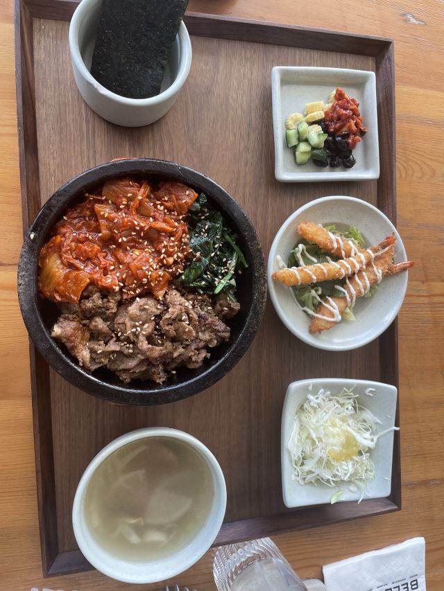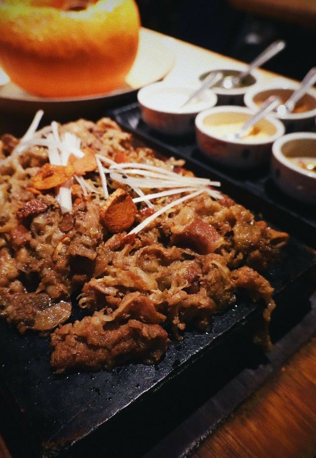 Professor Lee11点放号11:30进场,上菜翻桌还挺快,作为倍乐系列创意韩料,这家表现还不错。 -番茄泡菜五花肉烩饭 最推荐的烩饭,不负期望,口感层次丰富而且融合的很好。 -黄金南瓜粥 比我想象的好吃,不会非常甜,甚至奶油有一点咸味带动整个粥的味道不会那么单一。 -备长炭直火烤肥牛 牛肉本身一般般,但创意还可以,配的几款酱表现都不错。