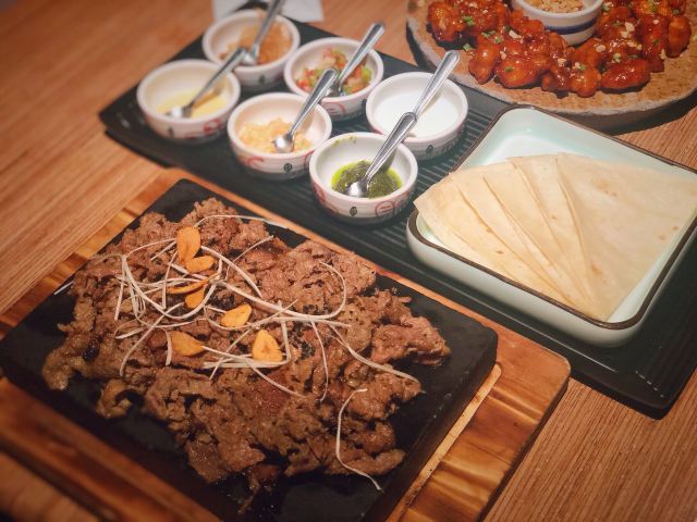 备长炭直火烤肥牛,番茄泡菜五花肉烩饭,韩式辣味咕咾鸡,明虾辣酱奶油意面,火赞棒嫩豆腐汤,李教授土豆泥,菠菜蜂蜜芝士烤面包,黄金南瓜粥,红醋饮,海鲜辣炒年糕,猪肋排泡菜火锅,甜辣味花生炸鸡,石锅饭,辣酱炒八爪鱼,葱香干烹鸡,奶油火辣鸡烩饭,韩式肥牛酱汤,手工泡菜豆腐,小意大利色拉,手工糯米米肠,黄油菠菜蛤蜊,泡菜煎饼,花生酱冰淇淋吐司,鳄梨来辣,奶油土豆泥,碳烤火辣鸡配芝士酱,咖啡冻饮,阿兰奇尼芝士饭团,黄金虾饼