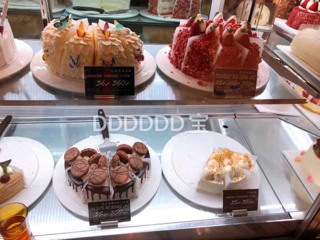🌟从地铁🚇2号线通往久光百货看到的第一家店,就是delicake!每次路过都会被诱人的蛋糕吸引得挪不动脚👣 🌟大部分卖的是片状蛋糕,价格大概在35元左右,也有整只蛋糕🎂,可可爱爱的卡通款,狗狗🐶,小熊🐻,花花🌸之类的 🍰「双重芝士蛋糕」35元一片,最近dp有团购,顶层有4粒干芝士粒~口感很纯。底下就是芝士蛋糕啦,芝士味浓郁,入口绵密,不会很厚重,不会太干,也不算很甜,好吃😋满足!😄不过对我来说一块太多了,还是会有点腻,适合分着吃~