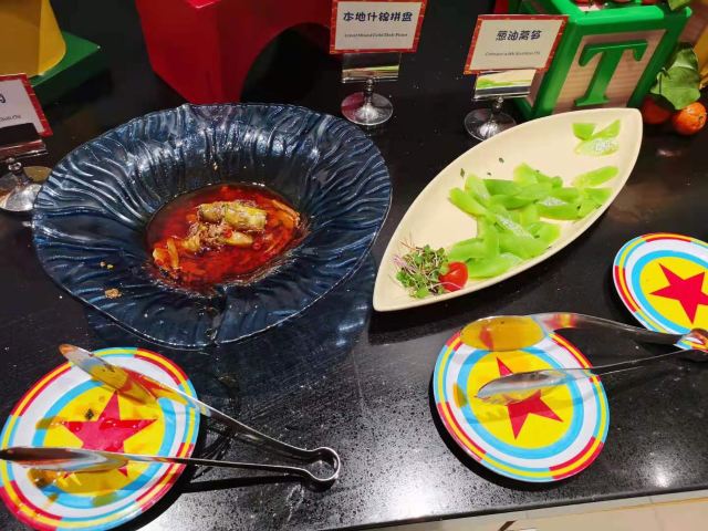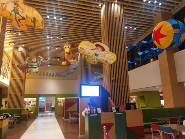 丰富多彩的美食广场,提供柜台点餐服务,让你轻松快捷就可享用可口美食,就餐时光也变得乐趣无限。阳光食汇的名字源自影片《玩具总动员3》中的阳光幼儿园。这里供应各种令人垂涎欲滴的精品美食,小小宇航员、可爱小牛仔、当然还有各位家长都可以在此尽情享用美食。