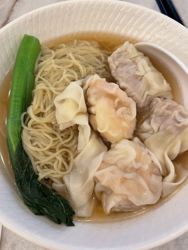 葡珍轩冰室,空位很多,来吃个简餐。 云吞面 48元,云吞和面都不好吃,吃上去干乎乎的,口感不行。上面速度还蛮快的。