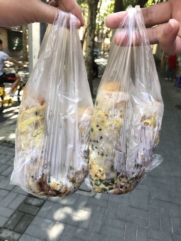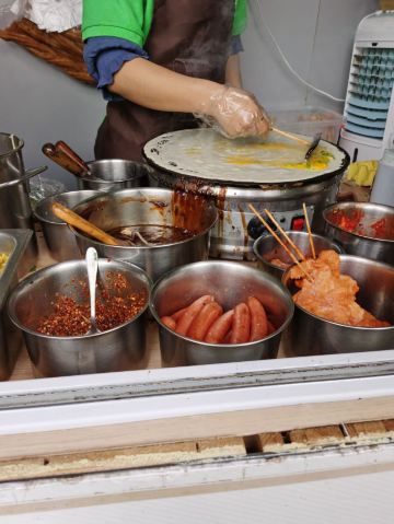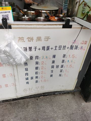 鸡蛋饼,油条,全家福蛋饼,可可牛奶,甜面酱,夹脆饼,山东煎饼,杂粮煎饼,葱油饼,一楼阿姨蛋饼窗口
