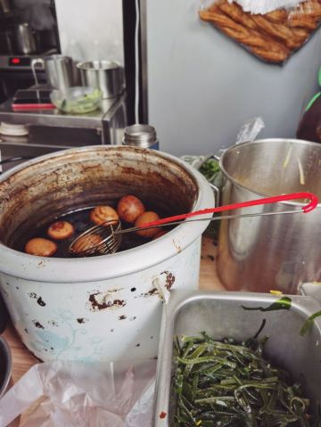 华阳路的鸡蛋饼摊是上海为数不多的鸡蛋软饼的摊位了,其实也不能说是摊位,因为是在人家家里制作的,在小区入口处有一个牌子的,阿姨大概50几岁,厨房间就是蛋饼的制作区,上海的鸡蛋软饼一定要加油条这样才好吃,还有甜面酱的味道也一定要浓郁,这两点华阳路的鸡蛋饼摊都能满足。