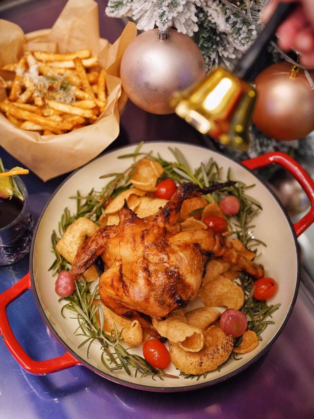 秃比不是小刘鸭先有🐔还是先有🥚呢? 位于美食扎堆的富民路上,美式bistro风格,除了主打的“鸡”与“蛋”元素设计,店里🎄圣诞氛围也很浓。 店里专营葡式烤鸡料理,烤鸡套餐分为「烤鸡腿」🍗和「烤鸡胸肉」可以任意选择两款冷热配菜,相当于自己DIY哦~ 「鸡汁烤土豆」是用烤鸡的鸡汁直接烤的哦!🥔火候掌握的特别好,外部焦焦的内部却很酥烂,超级香的! 「米形面菠菜色拉」看着还蛮有意思的呢!🥗口感和意面无异的米形面融入了菠菜、樱桃番茄等等辅料拌匀,酸甜清爽,非常开胃。 「酱汁」这家烤鸡的点睛之笔——特调酱汁。这家的酱料都是点好后直接一小瓶上桌的,不够加还可以续,老板真的超级大方的哦! 「芝士牛油果鸡肉三明治」🥪全麦吐司外表煎得很透,但是不会发硬,吃起来还是酥松又有麦香。鸡肉挑的应该是鸡胸,和牛油果🥑拌在一起自带丰腴口感属性,沙拉酱和一些酸黄瓜添味,一口下去我看就是幸福的代名词。 📍地址:富民路 291 号,近长乐路 💰人均:80元