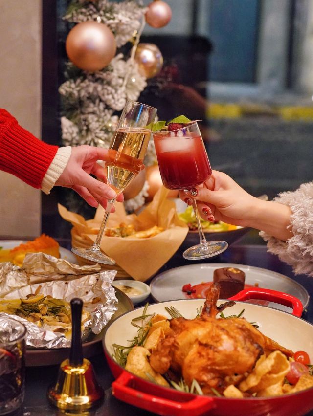 吃饭就别叫我了被🐑耽误的Christmas eve,当然要来LES ÉLITES补过一次! 圣诞树🎄麋鹿🦌雪橇🛷礼物🎁,只要一走进店里,就能感受到浓浓的节日氛围,在这里共进晚餐,每一天都值得纪念🕯️ 🍗黑松露栗子烤鸡🍗 我宣布,2023第一只烤鸡,击中了我的心巴❤️伴随铃铛响起,烤鸡华丽登场🔔每一寸鸡肉都吸饱黑松露香气,皮脆肉嫩超juicy👍 🐟干白银枕海鲈鱼🐟 海鲈鱼被锡纸包裹得严严实实,确保烤制过程水分不流失,佐以白葡萄酒海味汤汁,酒香更能激发出鱼肉的鲜香,一口魂穿地中海 🍫熔岩巧克力蛋糕🍫 选用巧克力界的爱马仕法芙娜制成,趁热切开还会爆浆哦,搭配酸酸甜甜的树莓解腻,给晚餐画下一个sweet ending❣️ 🍷梅有蕉虑鸡尾酒🍷 酸甜冰爽的杨梅鸡尾酒,冰块上还有2只可可爱爱的小企鹅🐧眼看着他们就要融化,不如赶紧喝了吧,这样就梅有焦虑啦!哈哈