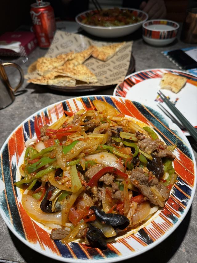sarah小piu这是一家我很中意的餐厅,本人超级爱吃新疆菜系,清真馆也去过不少,比起耶里夏丽我更喜欢这里,装饰很漂亮,像土耳其之类的国家也有很多这样的装饰,虽然对这一片地区,我并没有太大兴趣旅行,但是他们的美食真的深深的吸引了我。餐厅除了装饰漂亮,服务也算不错,这幢楼的人气不算旺,但餐厅的生意还算不错。我们点了很多食物,最令我喜爱的是鲜奶羹,里面加入了黄油等食材,香喷喷,入口一股浓厚的奶香。羊排个人觉得稍微肥了点,一大块白色肥肉有些难接受。馕的烧法也是各式,没吃到过难吃的款,每次换个口味尝尝。菜单很漂亮,看到了不少国家的菜谱也在里面,黎巴嫩、土耳其等国的特色也能尝到。不错。