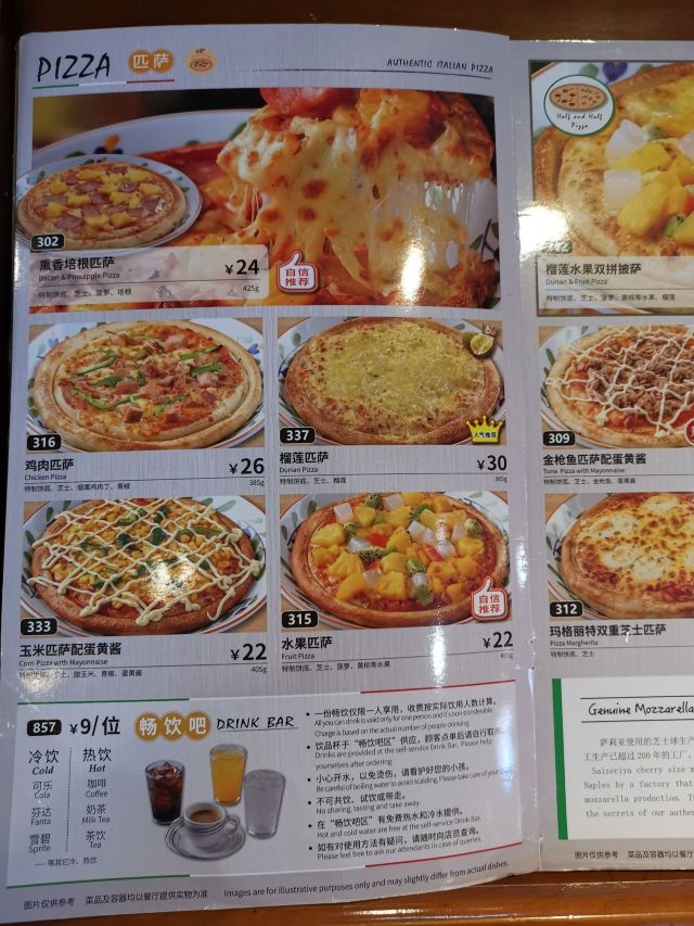 面包,培根芝士披萨,黑椒牛排,威尼斯风味墨鱼汁意面,奶汁鸡肉饭,黑椒培根意面,奶油玉米浓汤,炙烤菠菜,香草鸡腿排,金枪鱼披萨,意大利风味茄红烤翅,蒜香蜗牛,金枪鱼色拉,米兰风味肉酱面,烤肠,黑胡椒风味烤鸡腿,番茄海鲜利梭多饭,奶油培根罗勒意面,水果披萨,羊排