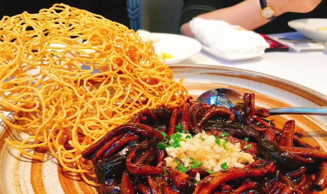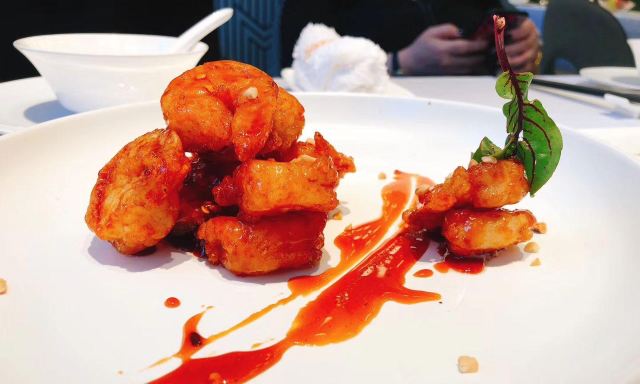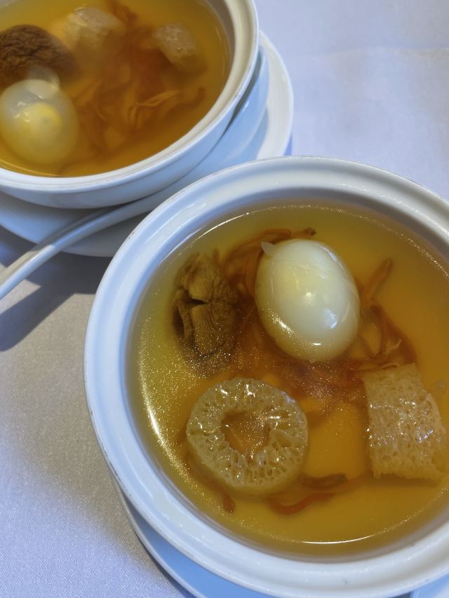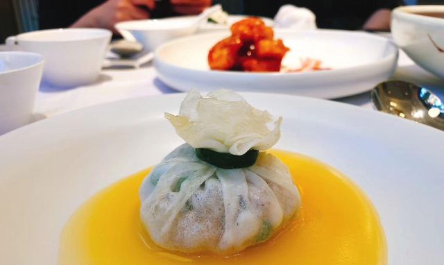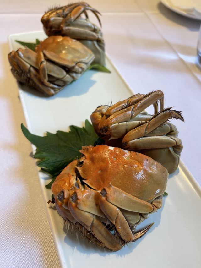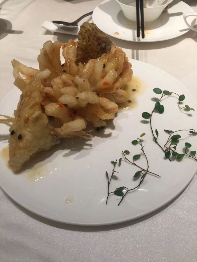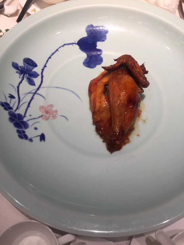 海味观(康定花园店) 很多年没来了,怎么觉得味道不如以前了。 黑松露脆皮烤鸡(需预订) 招牌必点,有松露味,需要提前预定。 云上东坡醉千层(需预订) 也是招牌,温度是温的,造型可以,其实是拿肉片叠起来,肉肥,中间是梅干菜也不好吃。 松茸野菌炖鸽蛋 汤清有鲜味,还可以 海派熏鲈鱼 热的,有腥味 松露陈皮酥牛肉 外层有些干硬 醉蟹 干乎乎的,味道偏咸,不好吃 油煎松露馄饨 还行