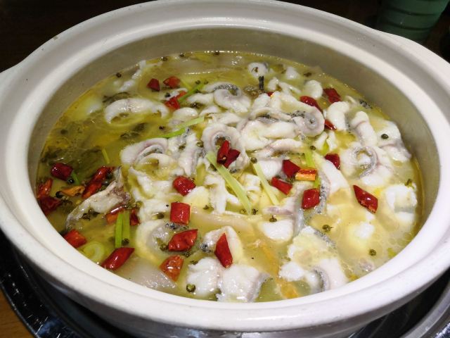 Annabella_w🌈🌈🌈 他家不用预约,之前看点评说,他们家门口不好停车,所以我把车子停到了前面的上滨生活广场里头,毕竟在广场里购物,只要消费满88元,就可以免费停8个小时。从上滨生活广场走过来不远 晚饭时分店里人不是很多,但是有很多外卖单子在不停的接单。 店里的鱼就一种,48元一斤,落座后是先是到后面选鱼,服务员会根据你的人数给你捞一条差不多大的鱼,但是这里面的鱼最小的都是两斤多的,虽然我一个人来吃,也是找了池子里最小的鱼也要2斤6两。 鱼选好以后你要根据自己的口味儿来选锅底,酸菜鱼,青椒鱼或者番茄鱼都可以,我选的是青椒鱼微辣重麻。 味道真的很赞,鱼肉很细嫩弹华。只是一个人确实吃不多,光打包就打包了四盒。 下回有机会带朋友来,再尝一尝番茄锅底。