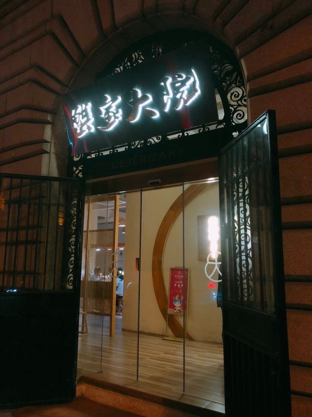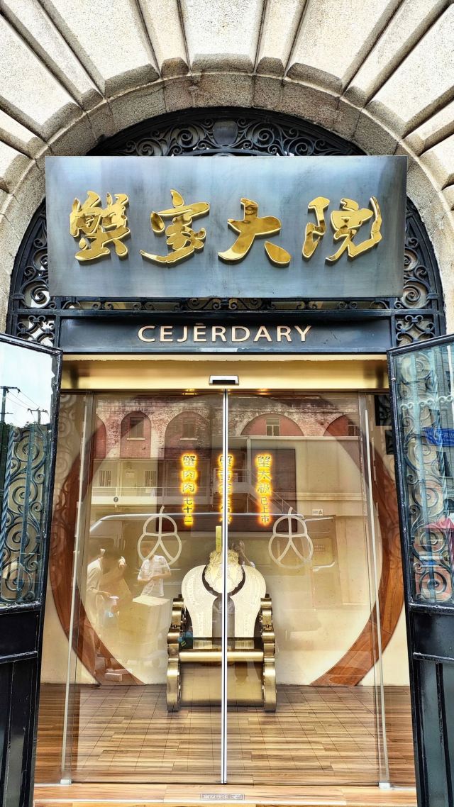 地方非常的靠近外滩,门面就有点小金碧辉煌,高端!里面地方也还是挺宽敞的,带有点古色古香的韵味。 吃的方面食材质量是无可挑剔的好的,面上面铺了满满一层的蟹黄金,入口那真的是鲜美至极,而且一点蟹壳啥的杂质都没有,可见是下了一番功夫的。花生米也挺好吃的。饮料是自助的,酸梅汤,气泡水,矿泉水想喝多少就是多少。另外面条不够是可以免费添加的哦! 服务也是五星级的!